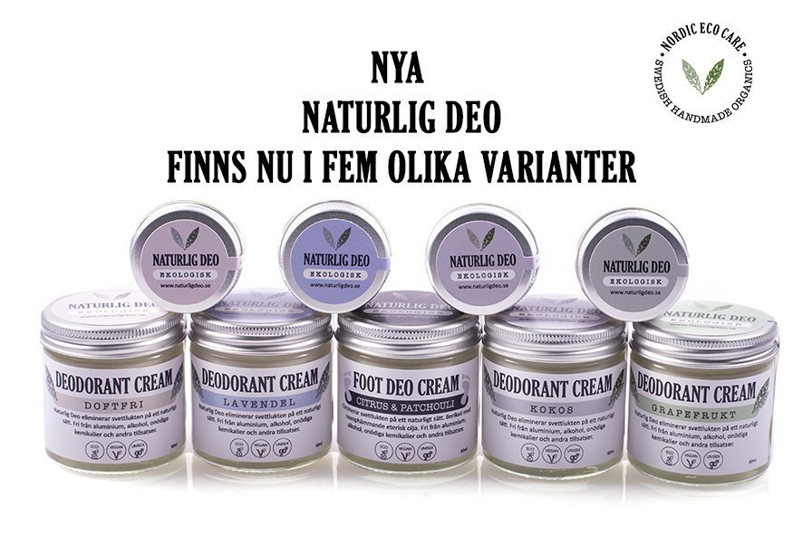 Förutom deodoranterna i doft av kokos och grapefrukt finns nu även Naturlig Deo som en helt doftfri och parfymfri deodorant + samt även i doft av lavendel. Dessa finns både i praktisk resestorlek som också är perfekt om du vill testa deodoranten för första gången, samt vanlig fullstor.