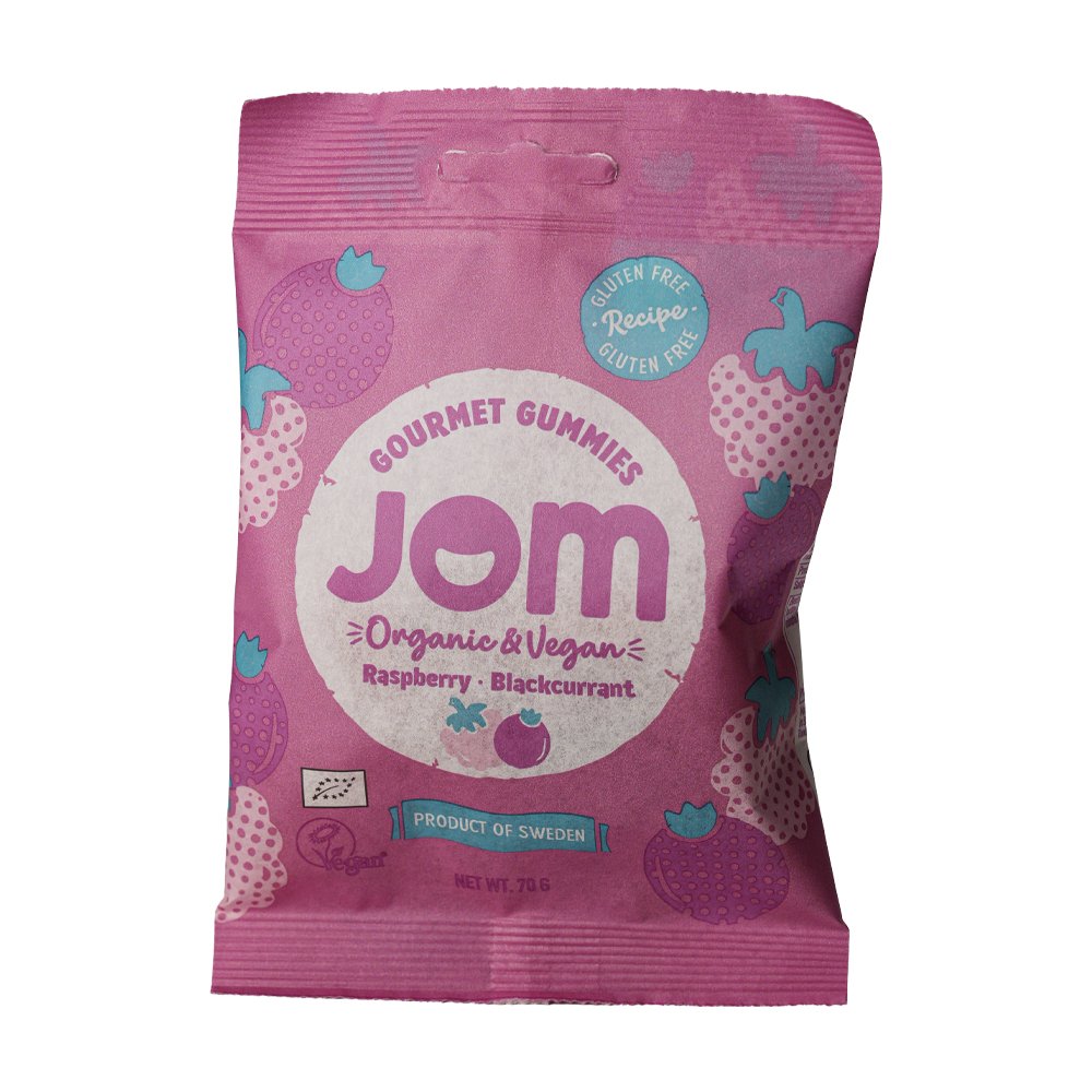 Eko & veganskt gelégodis hallon & svarta vinbär, 70g – Jom Organic