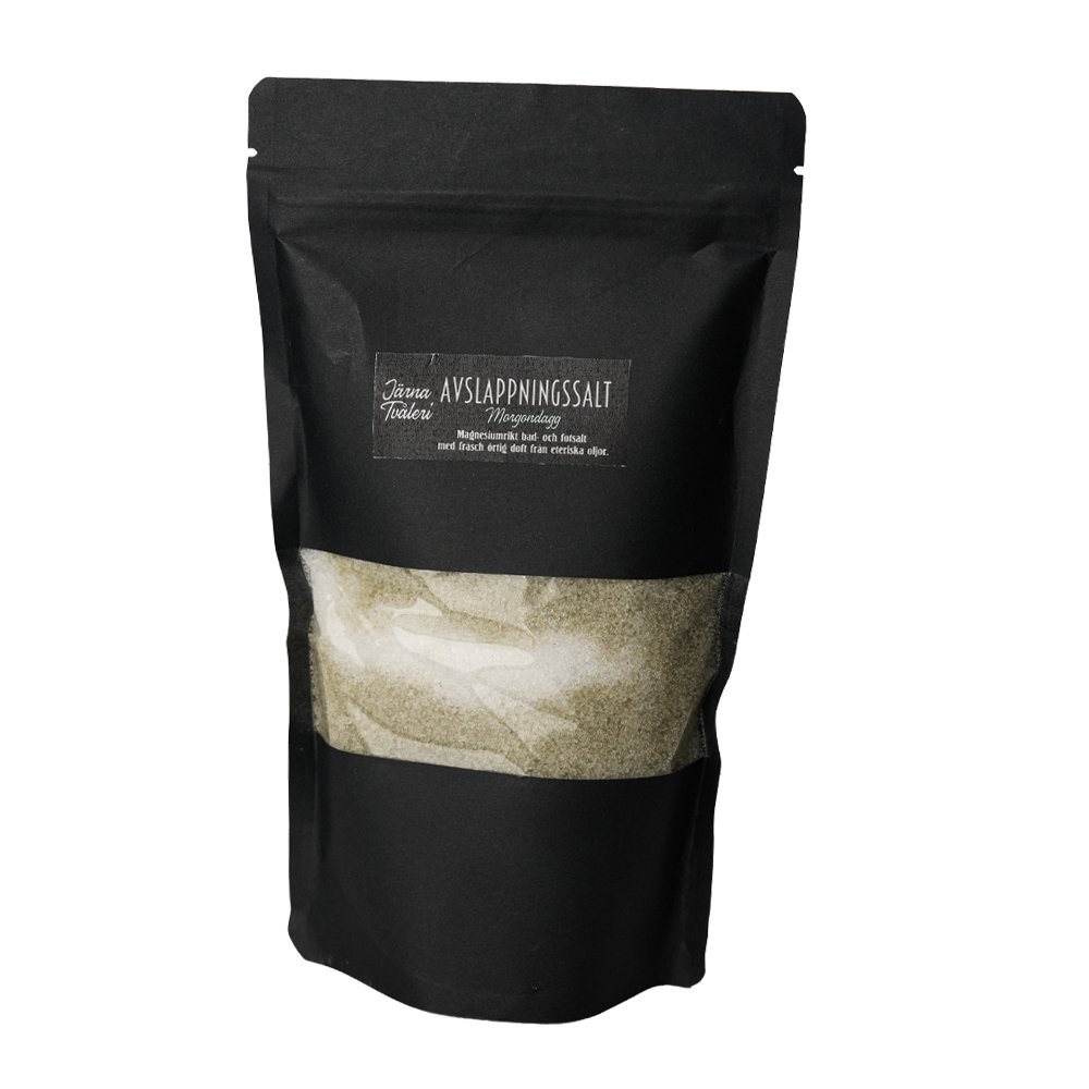 Badsaltet Avslappningssalt Morgondag med naturliga ingredienser och fräsch upplyftande doft. Hjälper dig att slappna av och lämnar huden sammetslen.